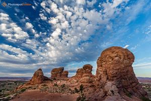 Balanced Rock Pullout: Balanced Rock is located along the main park road with a dedicated pullout for immediate access to this iconic formation. The circular trail around the rock offers multiple angles, letting photographers isolate the formation against open sky or include surrounding desert features. Sunset light enhances the contrast between the large upper boulder and its narrow base. Twilight can produce clean silhouettes. Subtle repositioning changes the alignment of the rock with distant features, providing creative flexibility. Revisiting under different sky conditions can yield significantly different visual results.