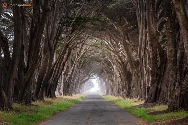 Cypress Tree Tunnel: This iconic avenue of densely planted Monterey cypress trees forms a natural tunnel over a rural roadway near the Point Reyes region. The dramatic canopy creates striking leading lines, perfect for wide-angle or centered compositions. Light filtering through the branches during golden hour produces depth, shadow, and texture, while fog or overcast skies can enhance mood and contrast. The tunnel works well as both a standalone subject and a framing element for passing vehicles or photographers exploring the scene.