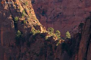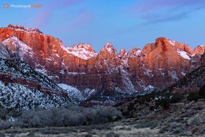 Towers of the Virgin (Altar of Sacrifice Viewpoint): This viewpoint, located near the Court of the Patriarchs shuttle stop behind the Zion Human History Museum, frames the Towers of the Virgin rising prominently above the canyon floor. The vertical formations stand out best in the late afternoon when side lighting enhances their texture and separation from the background.