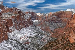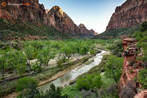 Zion National Park, established in 1919, lies in southwestern Utah near the town of Springdale. The park’s landscape features deep red and cream Navajo sandstone formations carved by the Virgin River over millions of years. Zion Canyon forms the central corridor and is accessible via the Zion Canyon Scenic Drive, which runs a shuttle system much of the year. The terrain ranges from steep canyon walls and riverbanks to high plateaus and slickrock formations along the Zion-Mount Carmel Highway. Areas like the Narrows and Kolob Canyons showcase the park’s geological diversity. Seasonal changes affect both access and appearance. Spring runoff increases river flow, while autumn brings warmer tones to vegetation. Early morning and late afternoon offer the most balanced light. Midday can create strong contrasts within the canyon.Top Photo Opportunities
