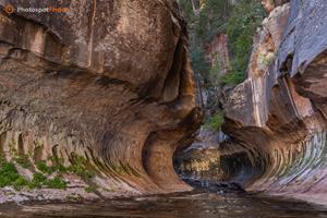 The Subway (Left Fork of North Creek): Accessed by a permit-only hike from Kolob Terrace Road, the Subway is a tubular slot canyon with smooth, sculpted rock and flowing water. The curved walls and reflective pools form strong compositional elements. Soft, indirect light is ideal and often occurs in mid-morning or afternoon, depending on conditions. Water flow levels affect both safety and photographic possibilities.