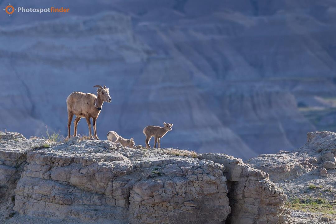 Bighorn Sheep and Lamb on the Cliffs of Badlands National Park